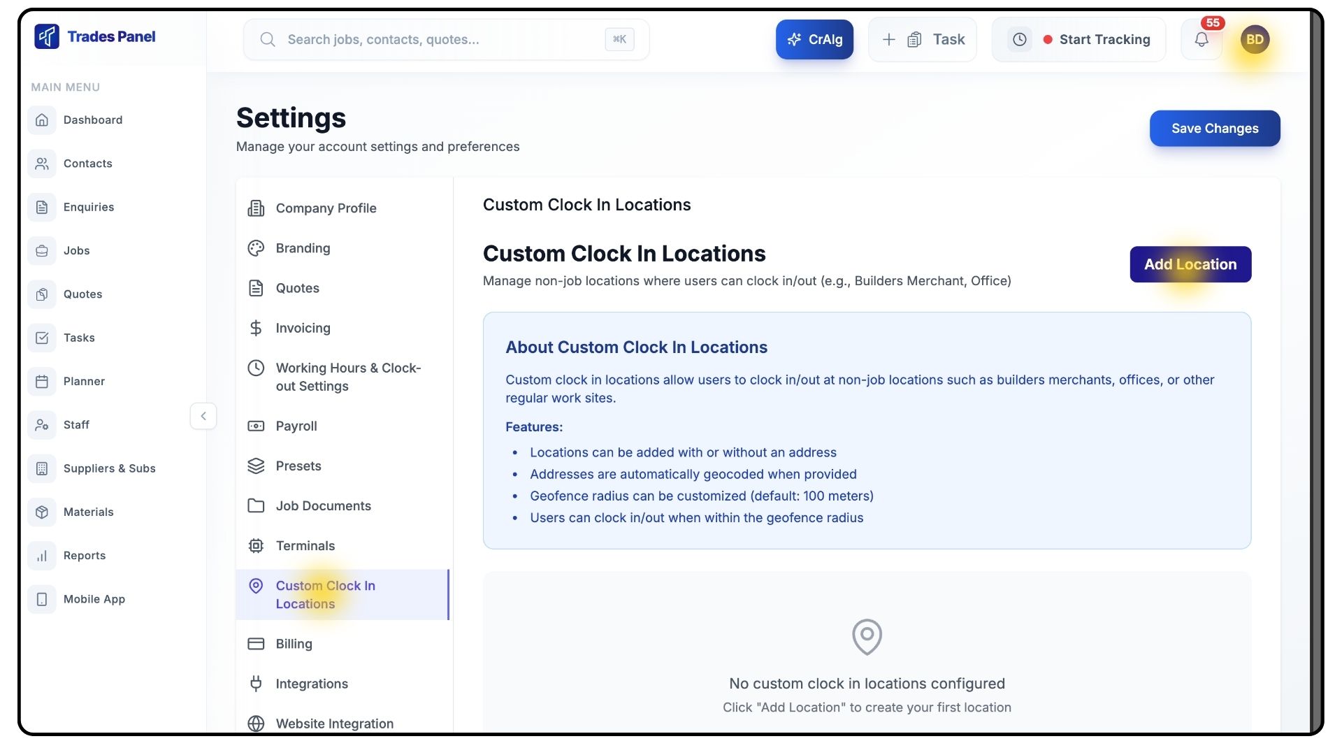 And that’s how Custom Clock-In Locations work in TradesPanel.