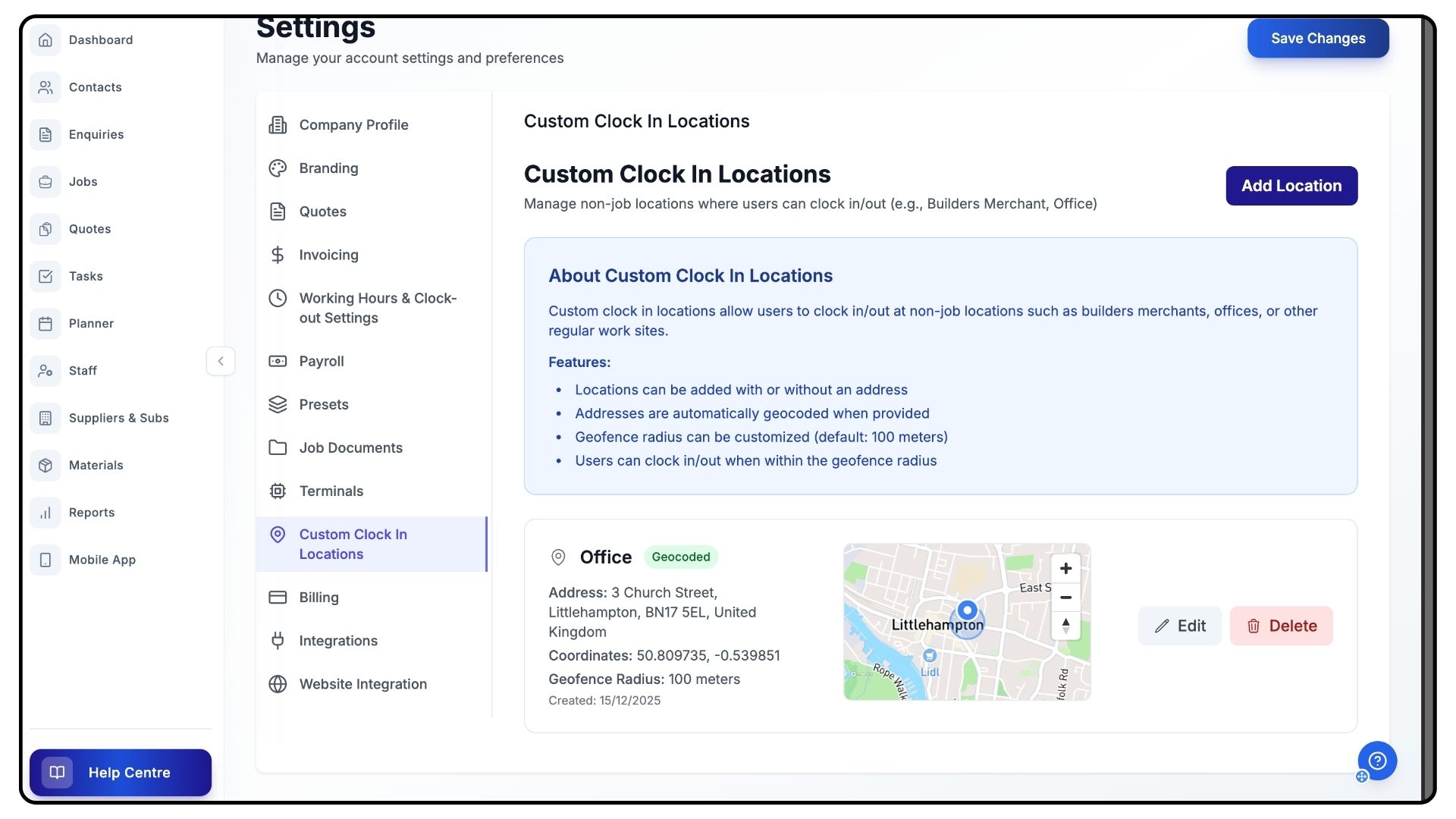 Allows you to keep clock-in locations accurate and up to date.