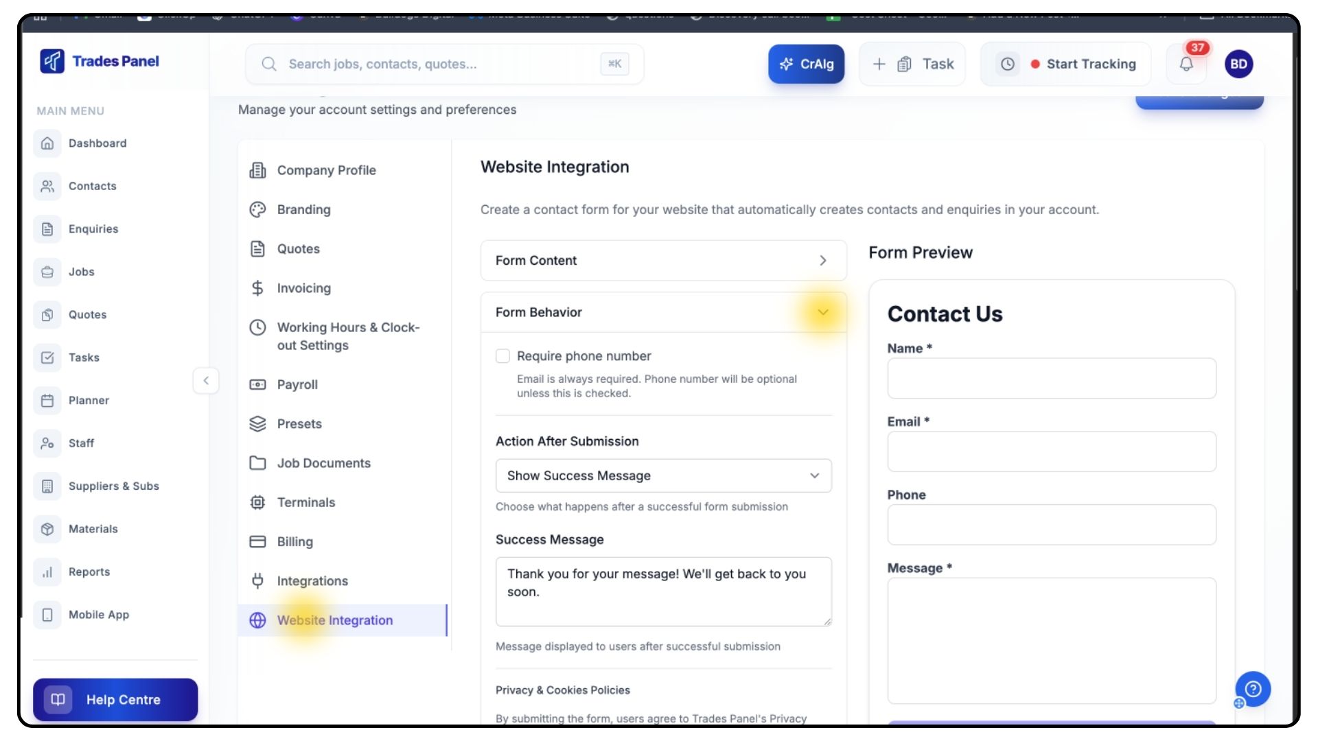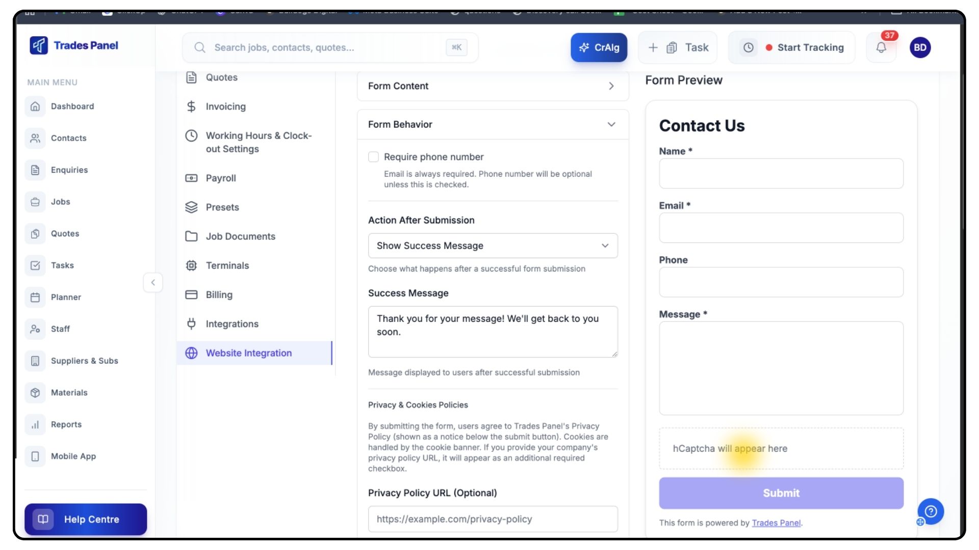 ✅ An Enquiries Pipeline configured - Navigate to https://www.tradespanel.com/app/enquiries to set this up