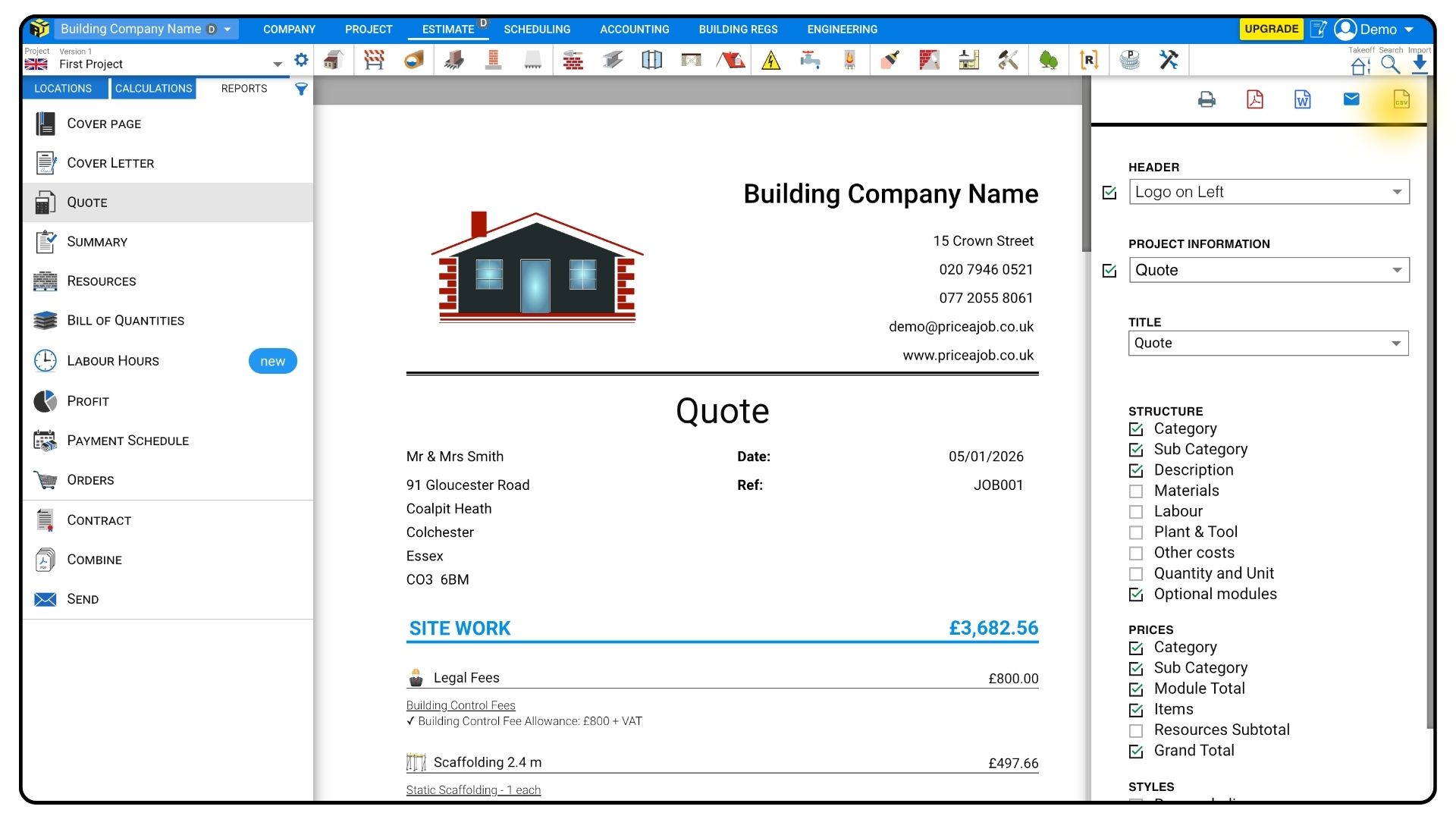 Exporting a Quote from Price a Job