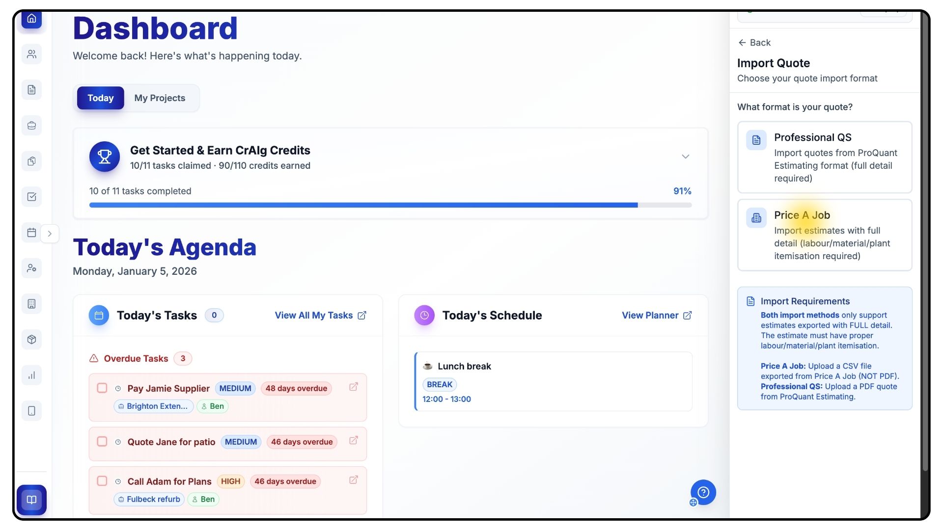Imports your Price a Job quote and converts it into a job inside Trades Panel.
