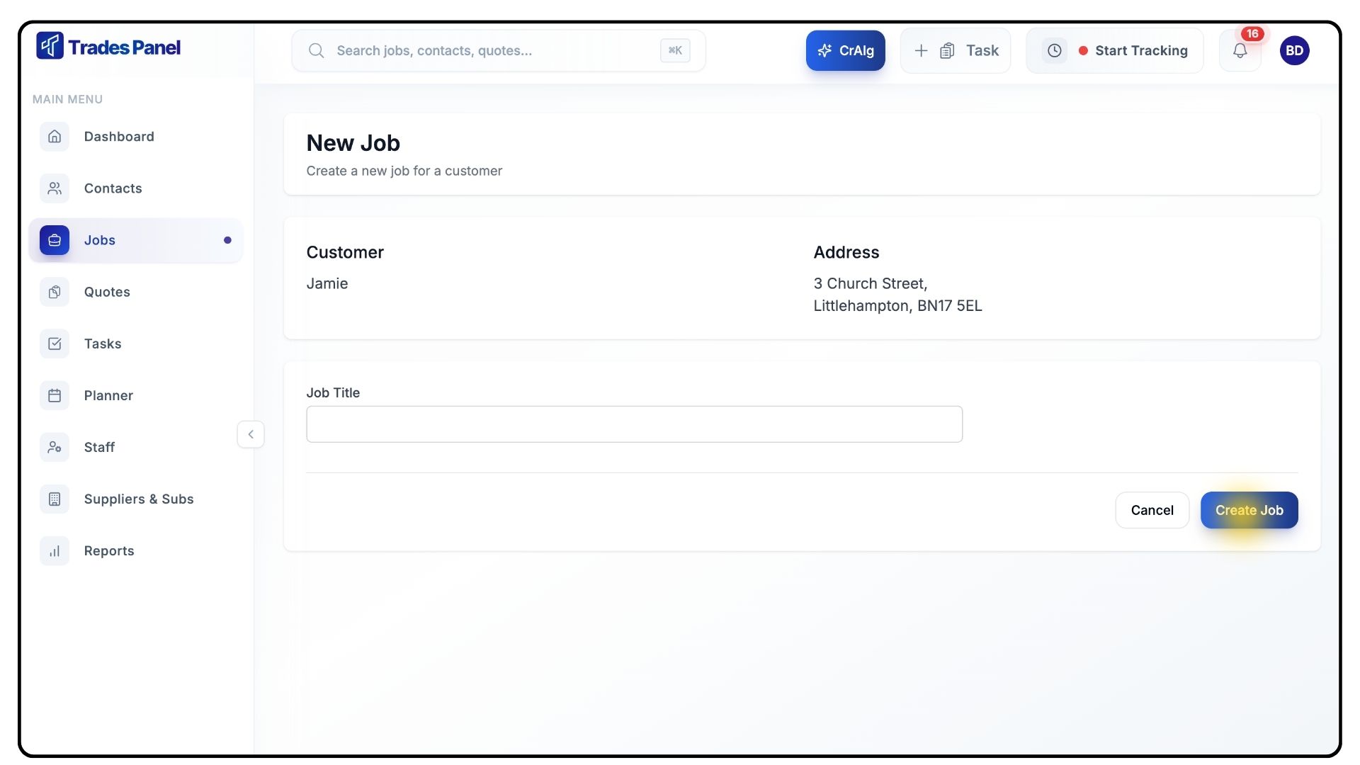 Creating a job links customer, address, and project details together to form the foundation of your workflow.
