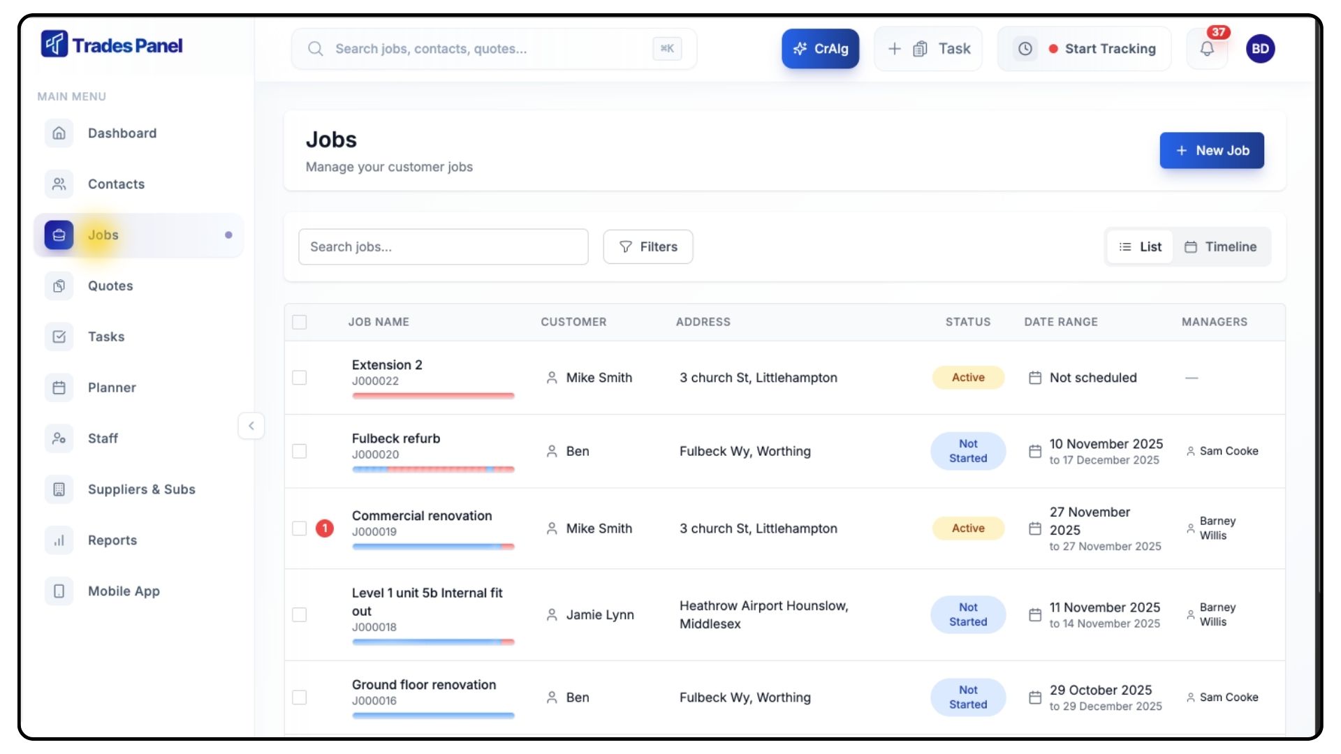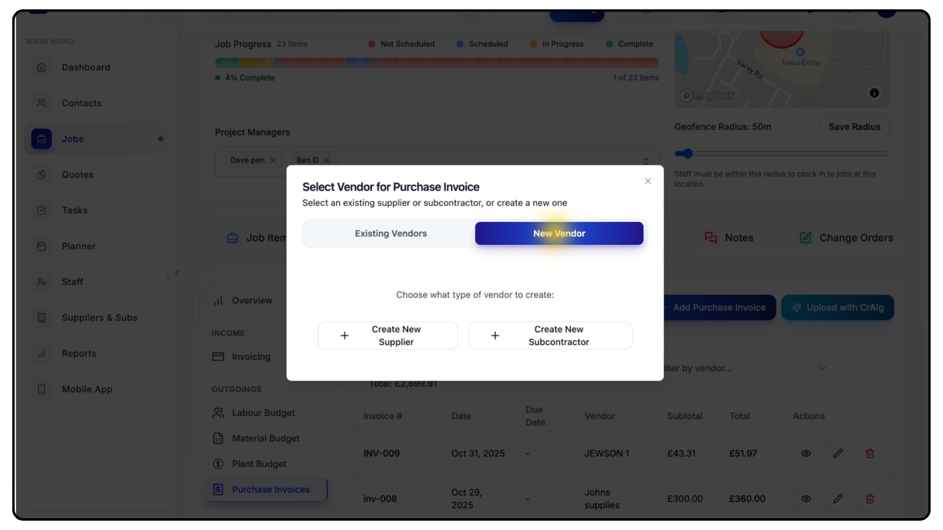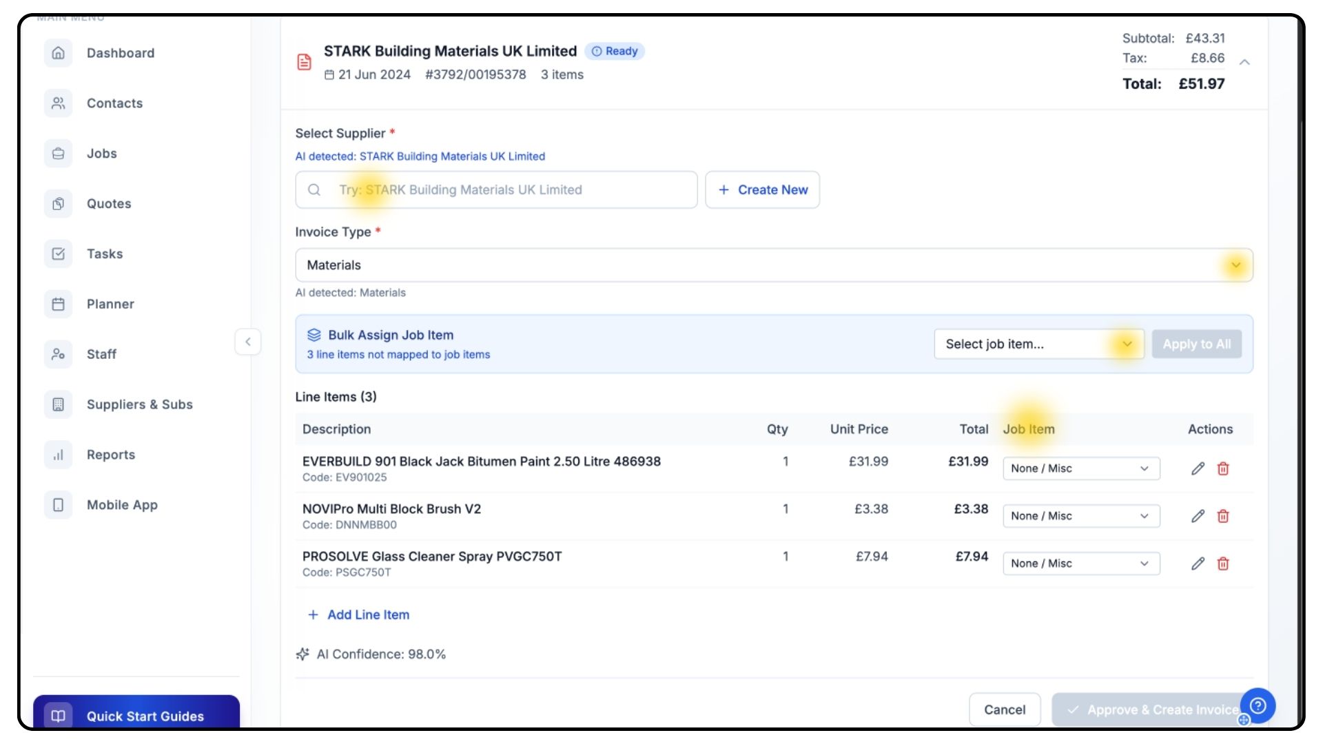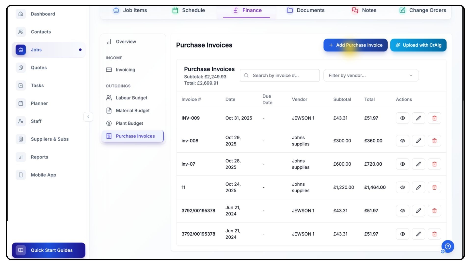 CrAIg is Trades Panel’s built-in AI tool that automatically extracts data from invoice PDFs, saving time and reducing manual entry.