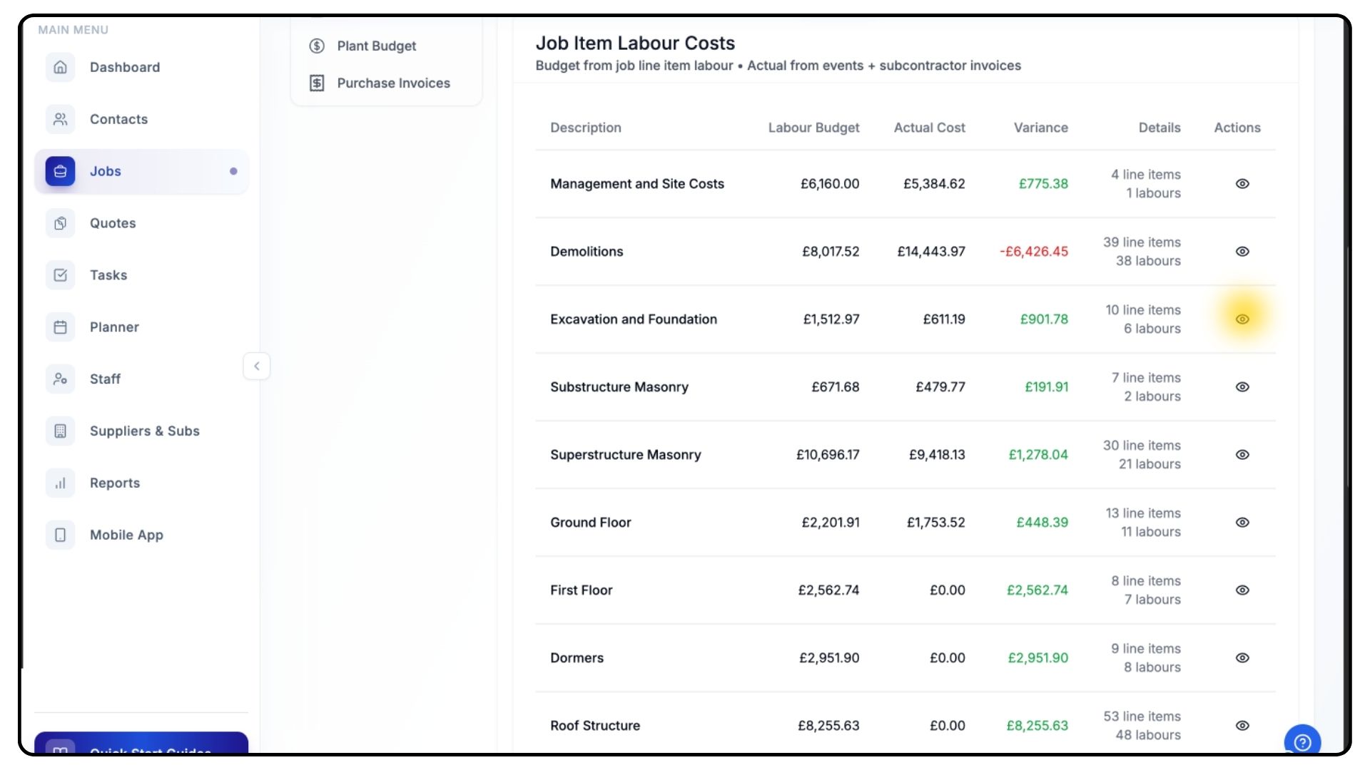 The Labour Budget allows you to track your team’s performance against allocated budgets, showing actual spend versus forecasted costs.