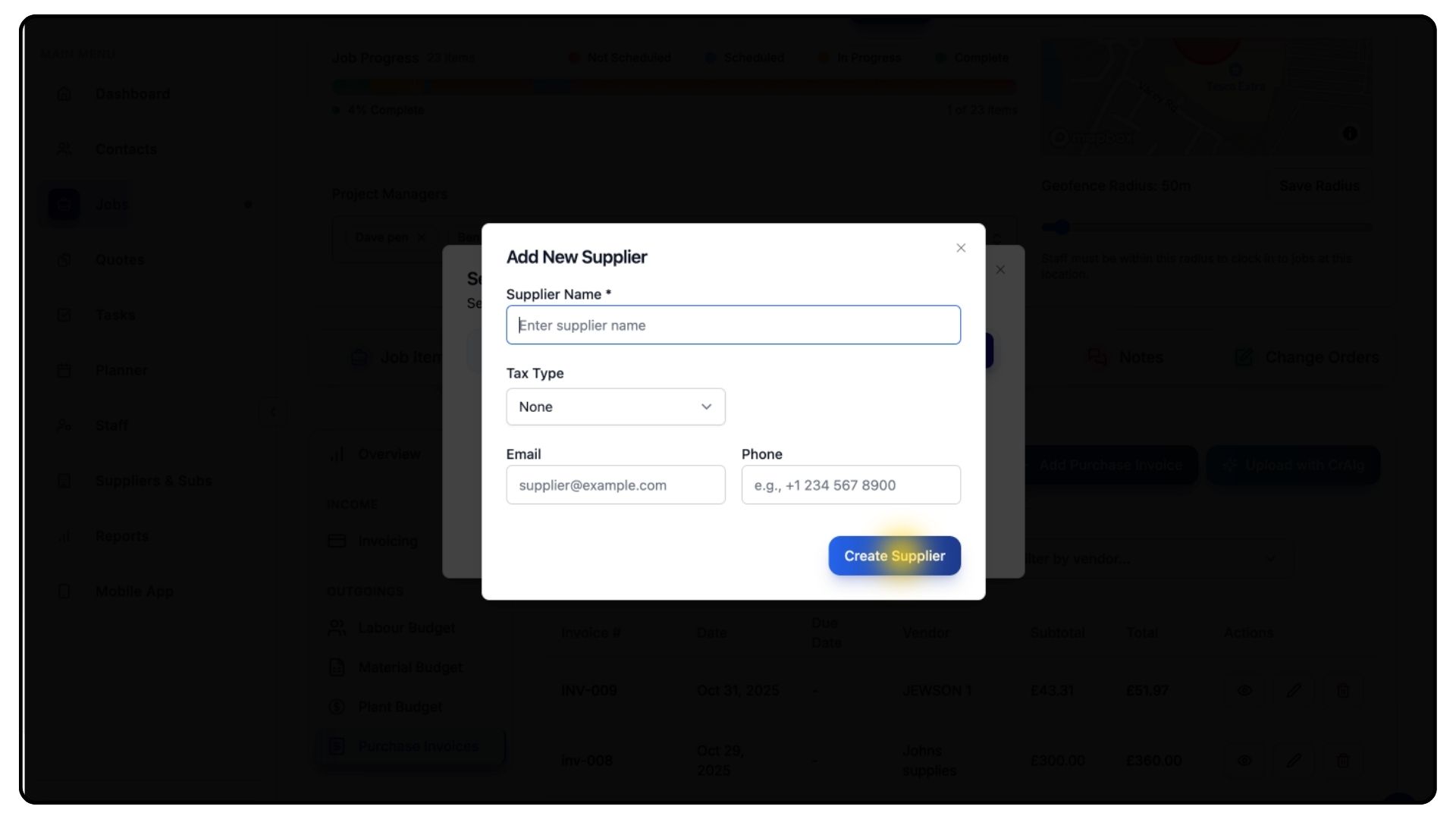 (If you’re not familiar with adding new suppliers or subcontractors, refer to the dedicated tutorial on the Guides page.)