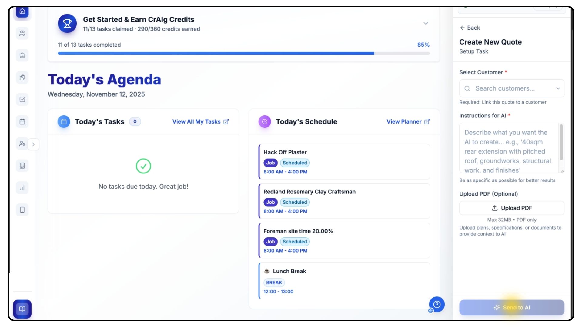 You can build quotes manually or use CrAIg, Trades Panel’s built-in AI assistant, to generate professional quotes in minutes.