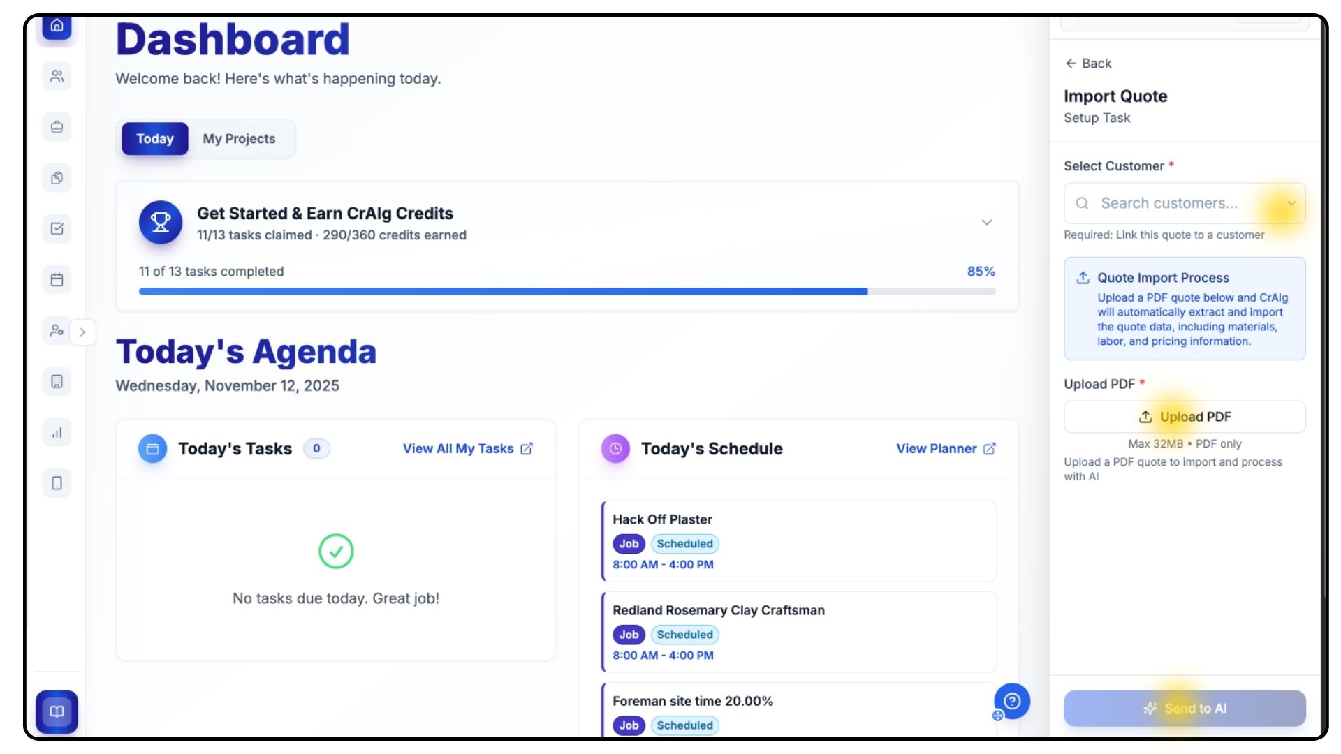 If you already have a quote in PDF format, CrAIg can extract the data and import it directly into Trades Panel.