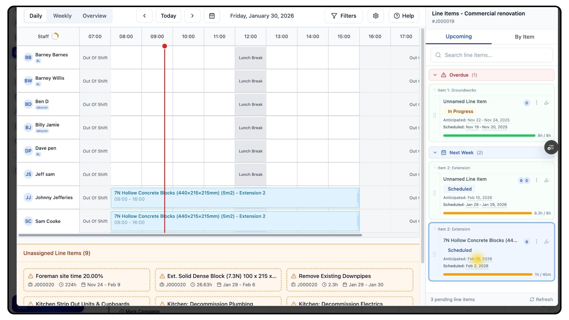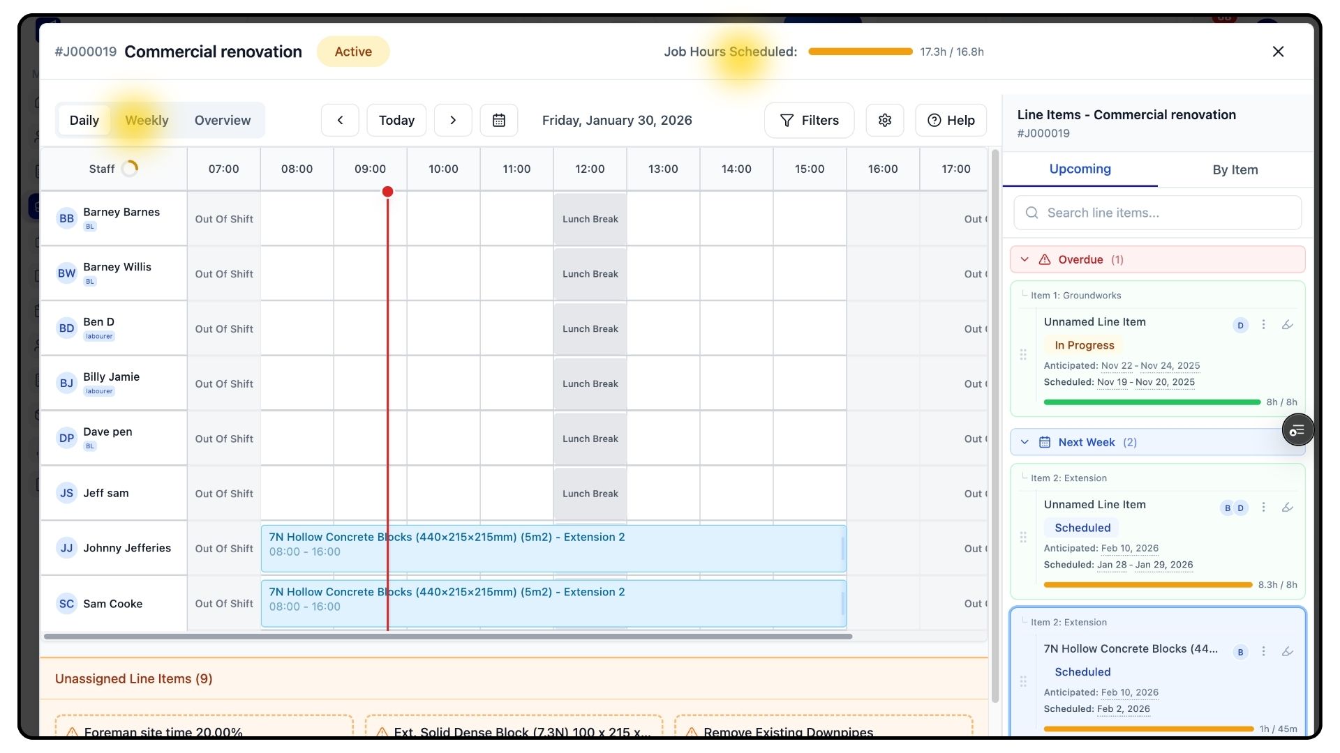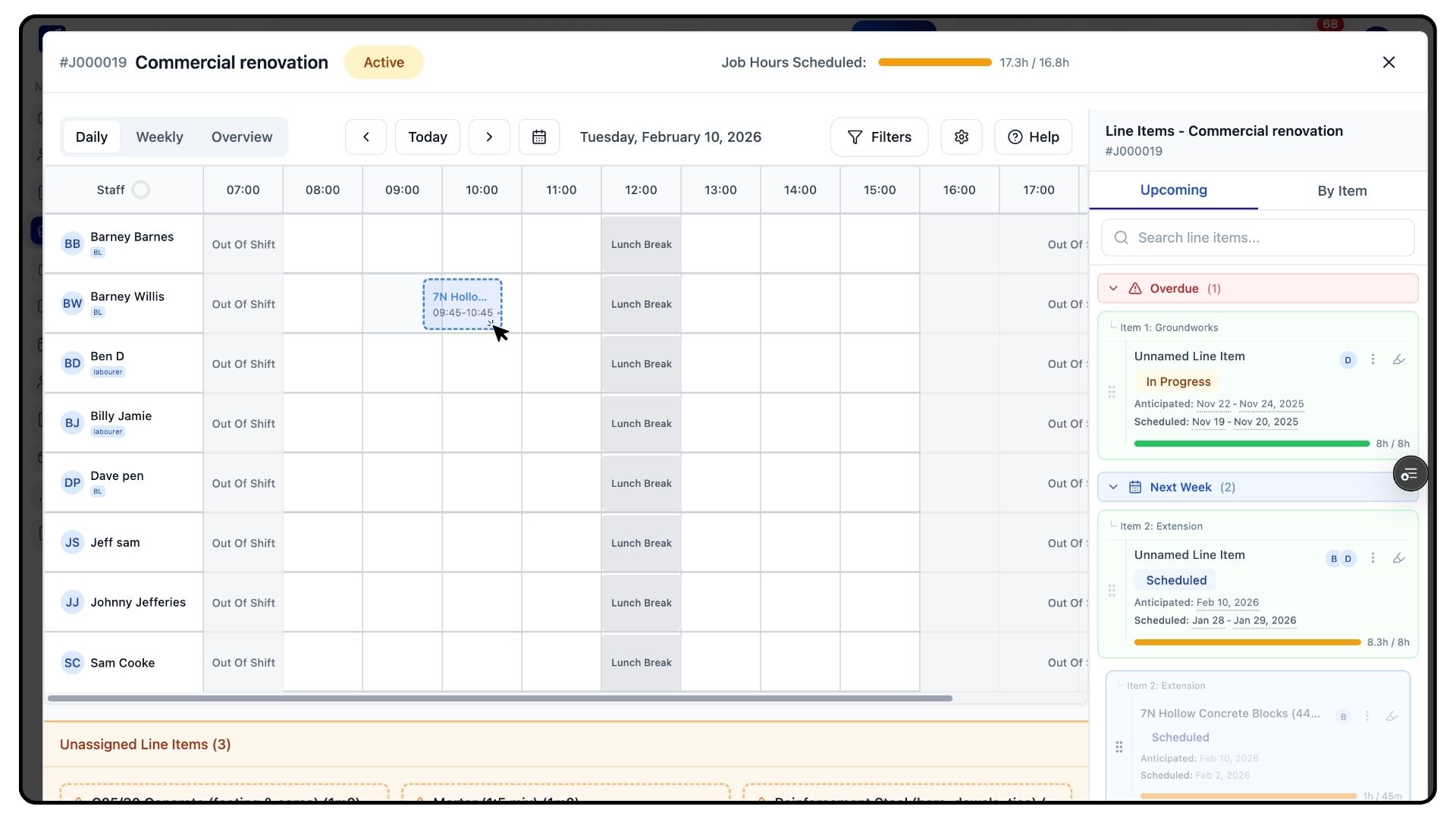 Below the planner, you’ll also see unassigned items from other jobs, giving you full visibility of outstanding work across your schedule.