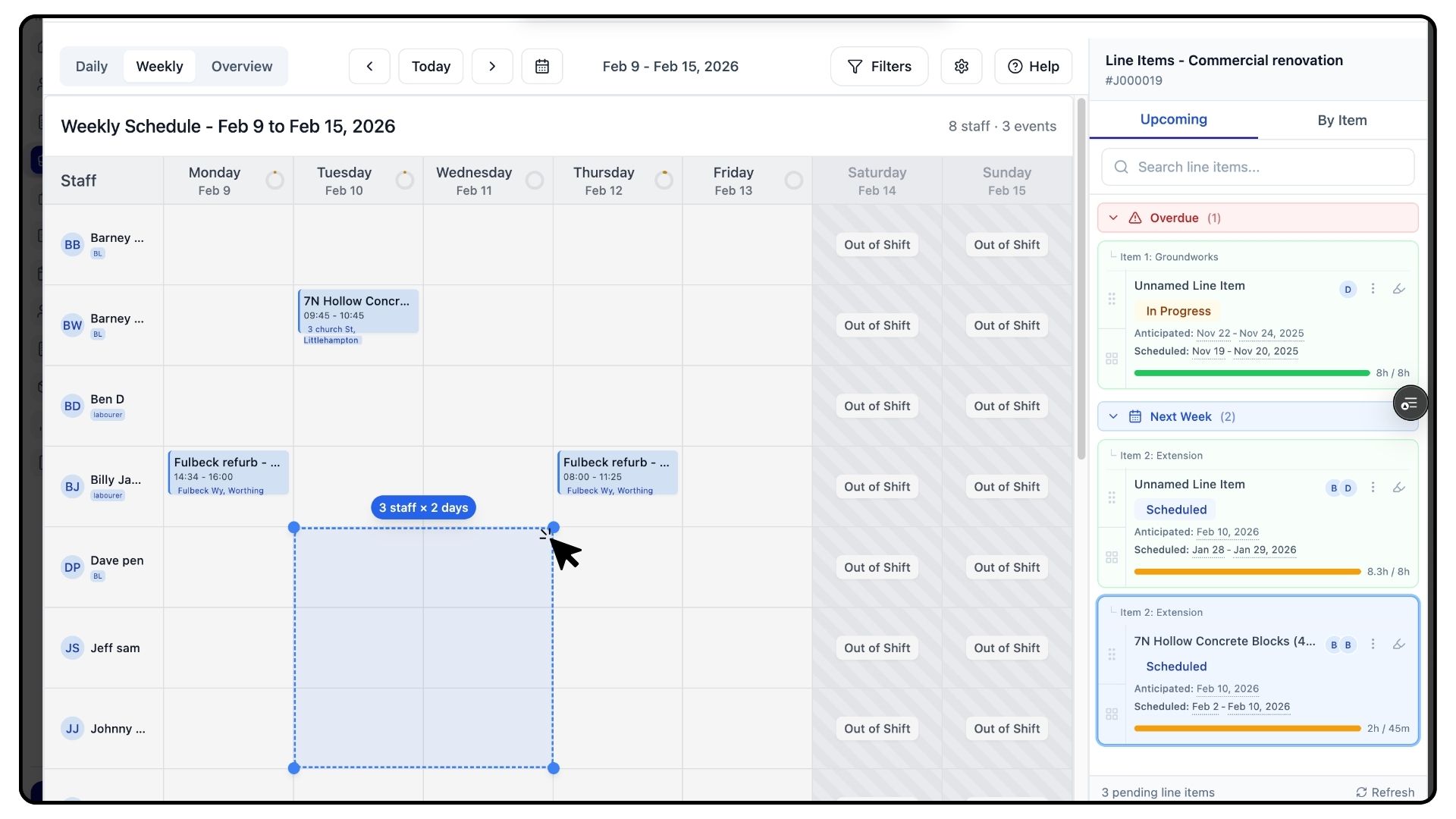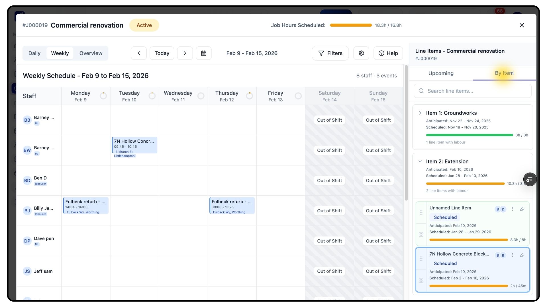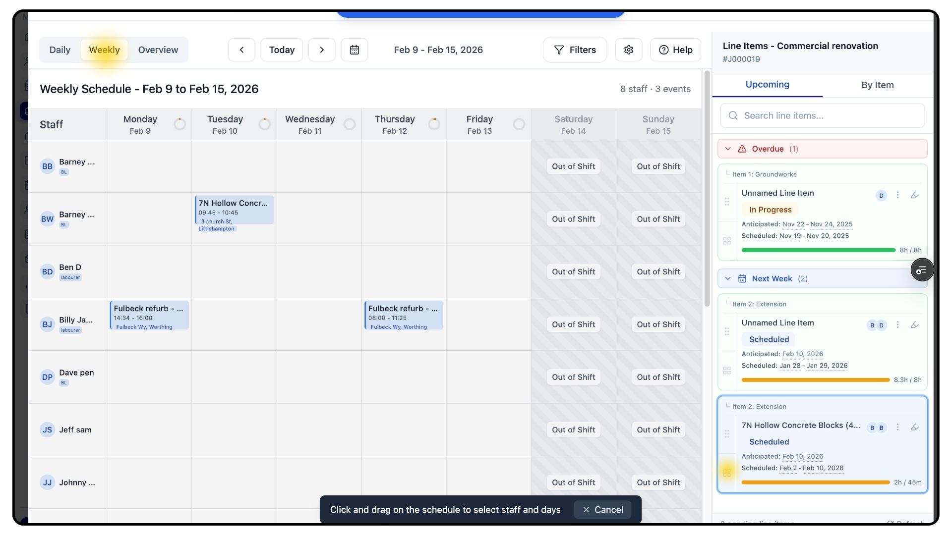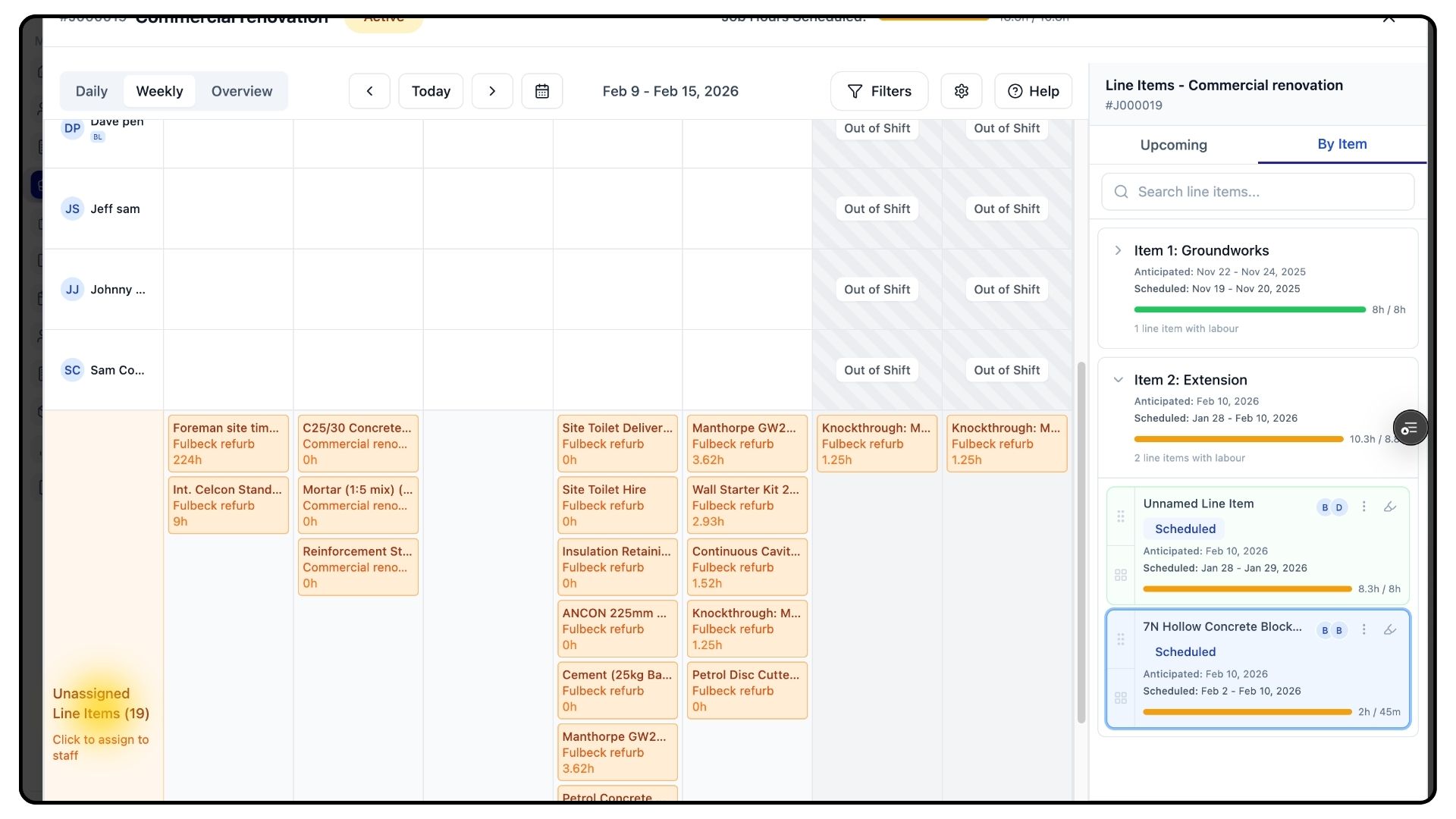 Below the planner, you’ll also see unassigned items from other jobs, giving you full visibility of outstanding work across your schedule.