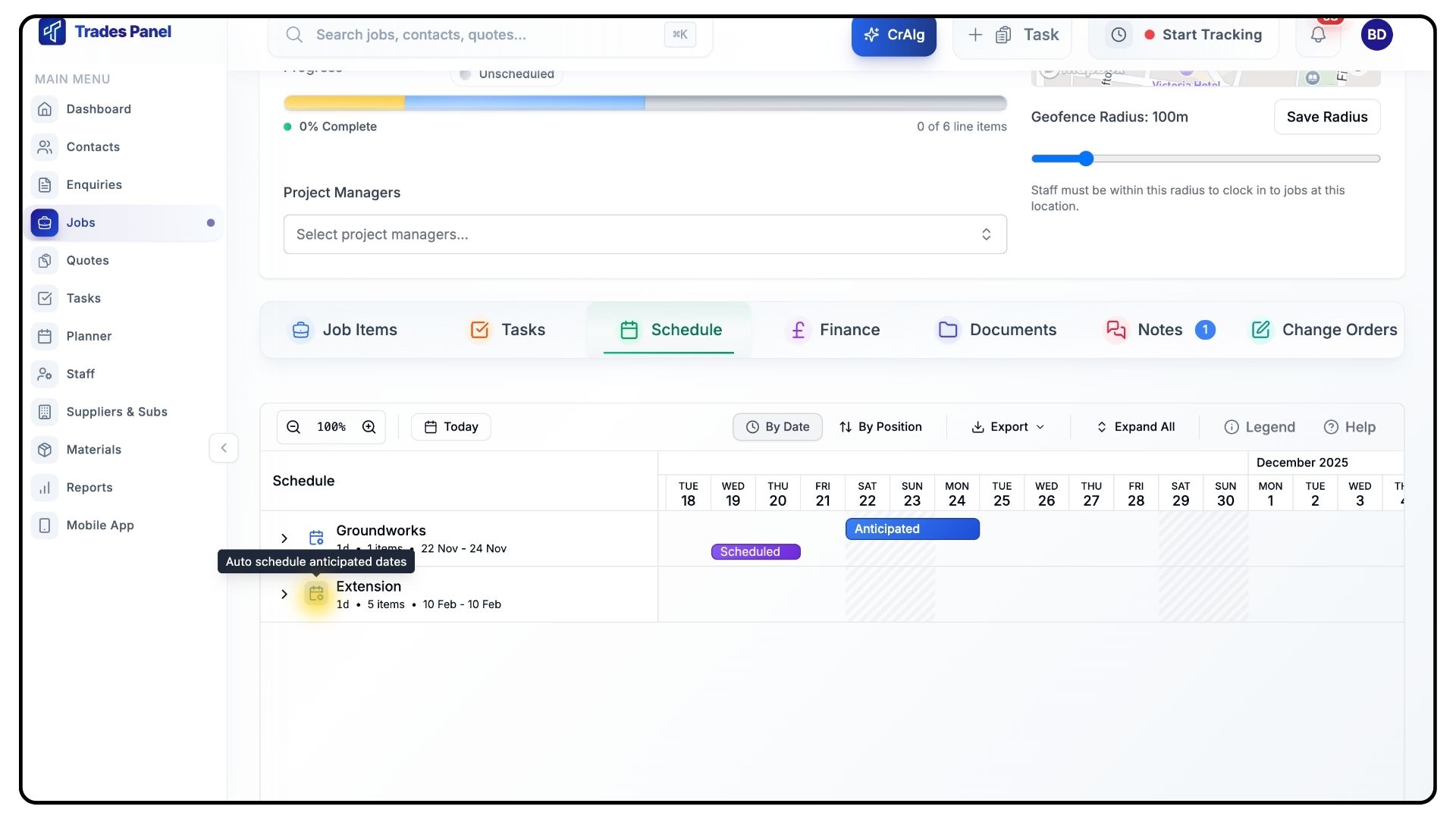 And that’s how to plan, schedule, and manage work using the Schedule tab in TradesPanel.